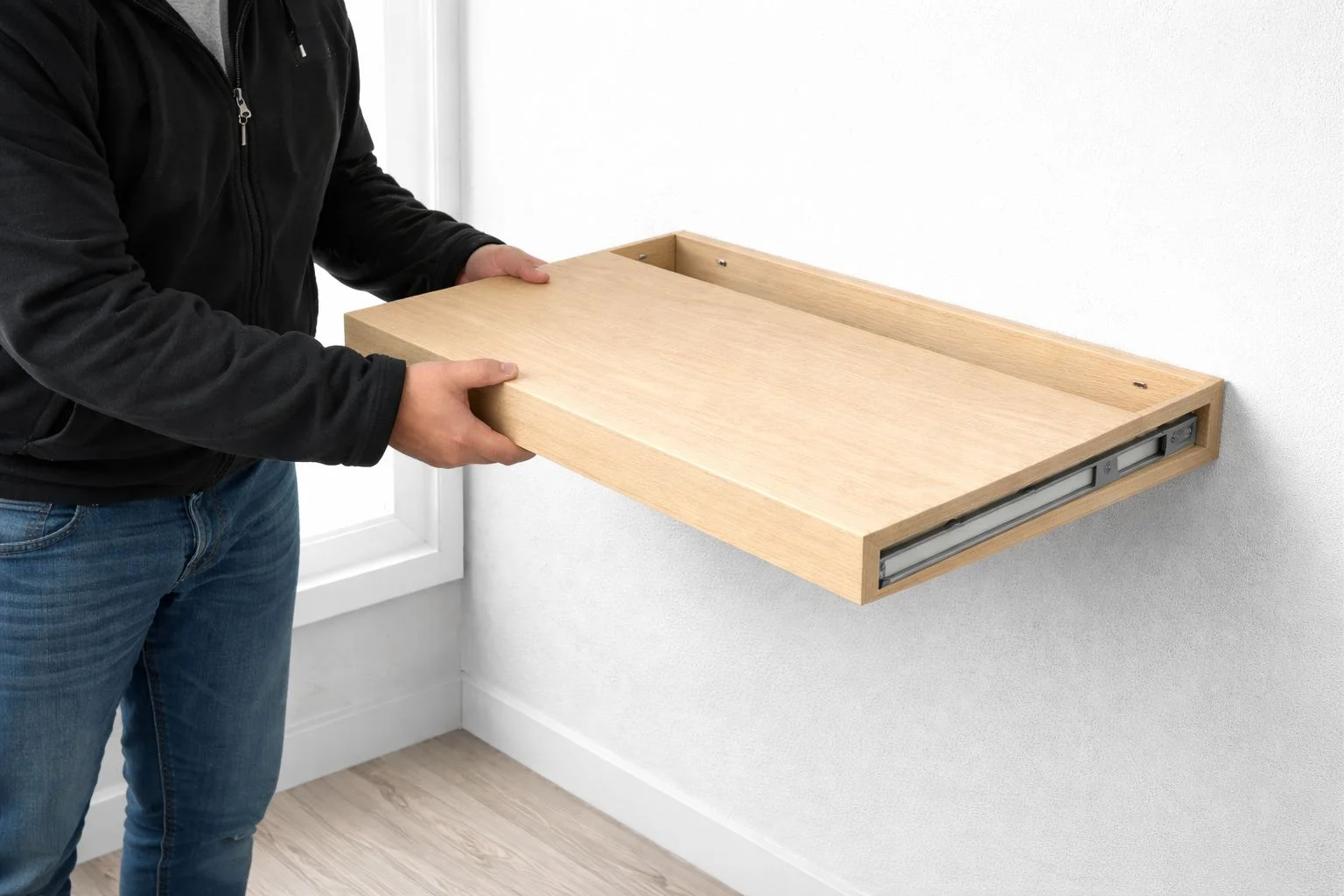 رف جداري عملي وعصري، ينسحب بسهولة من الحائط ويوفر لك مساحة يمكن لك ان تخفي أشياءك الثمينة داخله.